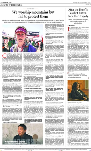 “We worship mountains but fail to protect them” . Carole Fuchs speaks with the Kathmandu Post about her shift from summit-chasing to climate storytelling, her upcoming documentary Beyond Records, and why mountain preservation demands storytelling, not anger.